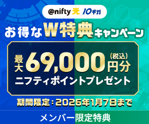 @nifty使用権への交換で1.5倍に増量するキャンペーンは、予告なく変更、または削除されることがありますのでご了承ください。